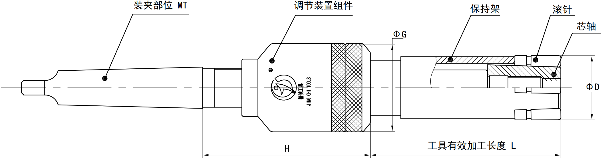 注:孔徑Φ26-68的滾壓刀有效加工長度從B檔開始柄部標(biāo)配MT3,如需其他型號(hào)規(guī)格需定做。加工孔徑Φ40以上的滾壓刀,由于調(diào)節(jié)組件的外徑比加工孔徑小,可通過加長柄部尺寸的方法增加加工長度。
